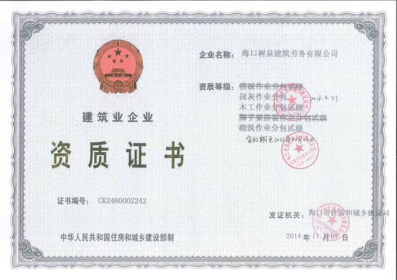 ??跇淙ㄖ趧沼邢薰境闪⒂?011年,公司位于???,其前身是一家專業建筑施工隊,自2004年即開始在海南從事建筑勞務施工。自成立至今,公司已經擁有一支科學管理、質量過硬、能打硬仗,搶工期的專業隊伍。能獨立承擔大中型工業與民用建筑 、室內外裝修、各類機電設備安裝工程。代表工程有??跒I海華庭、三亞時代海岸T01/02/04/05棟高層、合肥東?;▓@二期、陵水富力灣B區高層、三亞金中海(酒店)、瓊海大印經典花園、??诃h球海景大酒店(四星級酒店,在建中)、陵水珍珠大廈(五星酒店)、??谌f達廣場、美蘭機場二期。